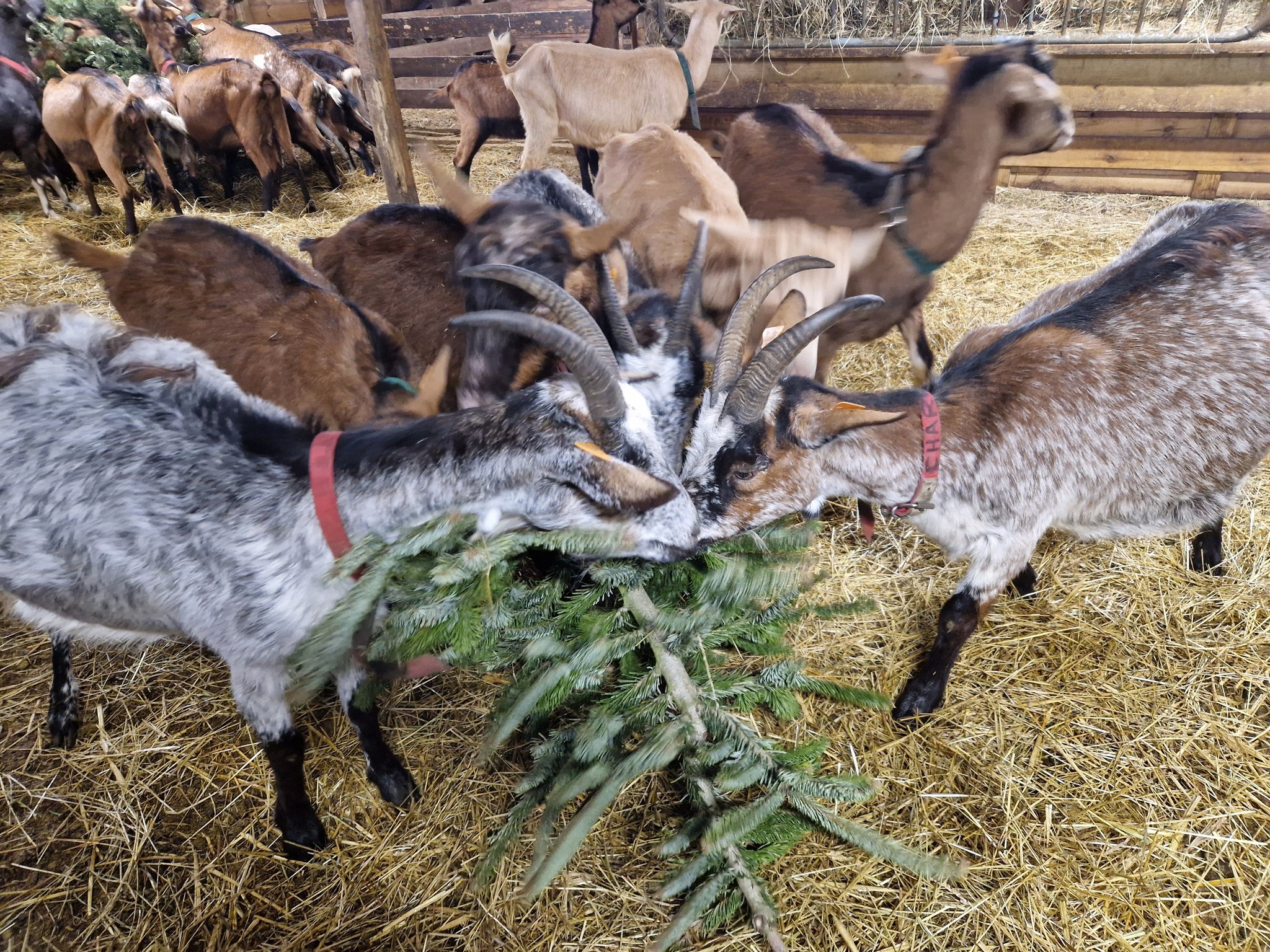 Plusieurs chèvreries récupèrent les sapins coupés. C’est la cas à Comines. Geoffrey Ghilmot a joint Cassandre Verhelst de la chèvrerie Capri’loups . L’éleveuse évoque une sucrerie pour les biquettes.