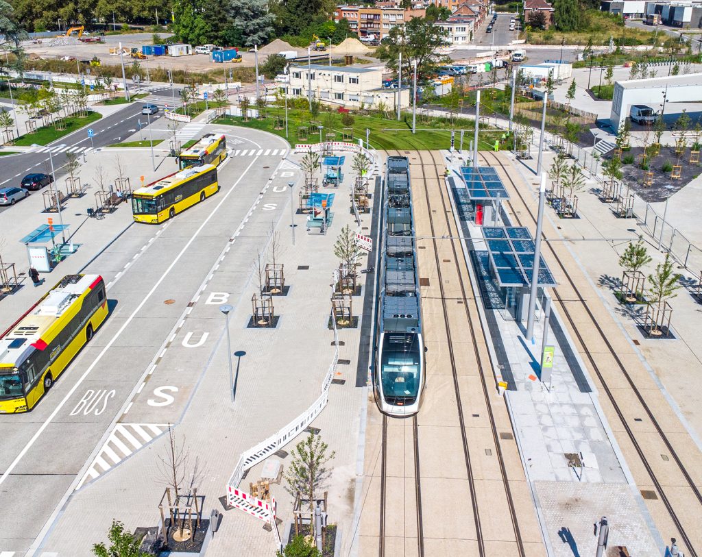 En parallèle du lancement du tram, le réseau de bus du TEC fait peau neuve. Désormais, la plupart des lignes de bus s’arrêtent au premier contact avec le tram. Des pôles d’échange spécialement aménagés garantissent une transition efficace et rapide entre le bus et le tram