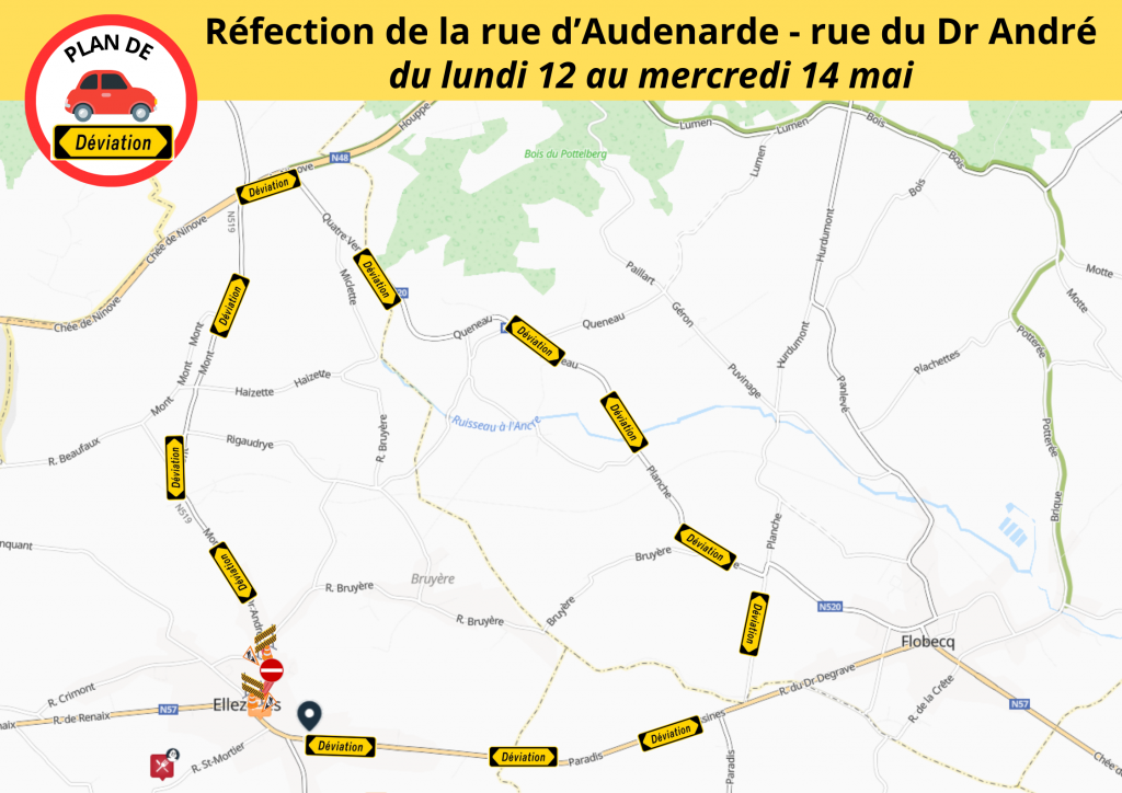 Une déviation sera mise en place via les rues Jean Vinois, de Lessines, Paradis, Planche, Queneau, Quatre-Vents et Mont.