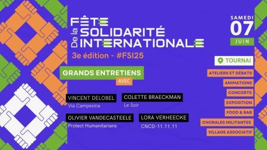 La journée sera rythmée par des moments d’échanges sur les grands enjeux de la solidarité internationale, dont plusieurs rencontres et débats ancrés dans l’actualité. Le premier de ces débats concernera l’accord de libre-échange entre l’Union européenne et le Mercosur qui pourrait bientôt être adopté. Les défis de l’aide humanitaire seront ensuite abordés avec le fondateur du Projet Humanitarians qui a été détenu dans les geôles iraniennes pendant 15 mois. Enfin, on annonce des échanges autour des défis pour la paix et le développement en République Démocratique du Congo.