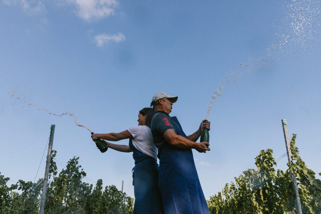 Originaire de Champagne, Laurianne, viticultrice, a rencontré Vincent, entrepreneur belge reconverti dans le vin, sur ses terres natales, lors des vendanges. Après avoir recherché différents terroirs, ils décident de lancer leur exploitation viticole en Belgique, dans la région de Mons. C’est ainsi que l’aventure « Mont des Anges » a commencé.