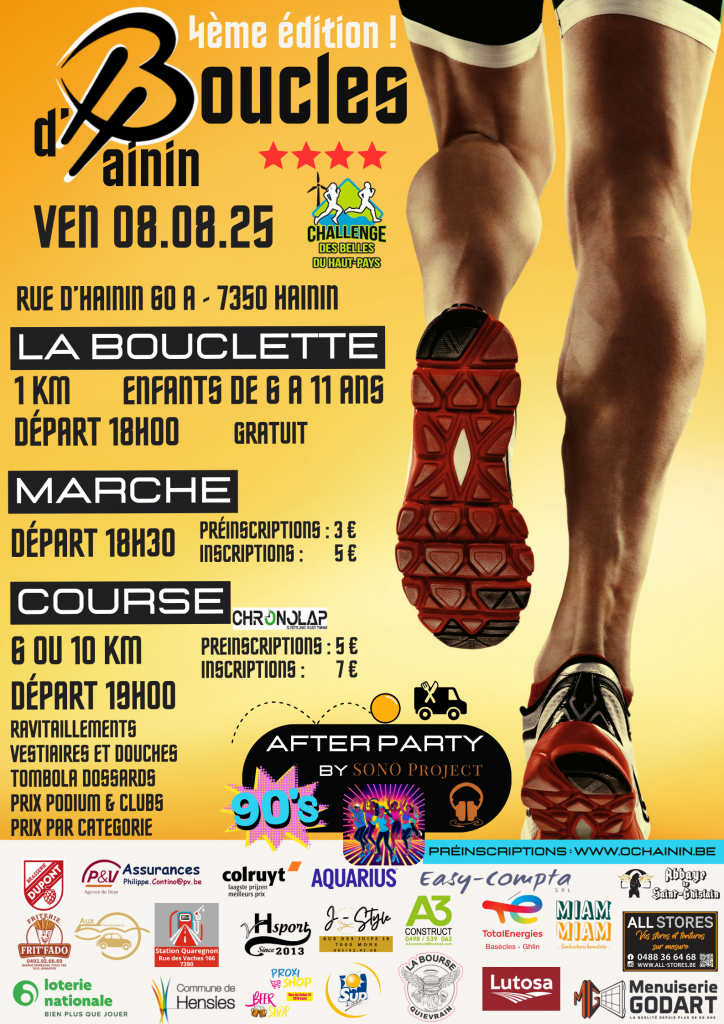 Vendredi 8 : dès 18 heures participez à La Bouclette, la marche et les Boucles d’Hainin de 6 ou 10 kilomètres ! Dès 21 heures plongez au coeur des années 90 avec l’after party signée Sono Project !