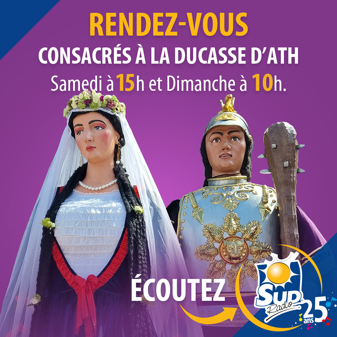 Bonne ducasse à tous les Athois et à leurs invités ! Et pour vivre pleinement l’événement, retrouvez deux rendez-vous spéciaux consacrés à la ducasse : samedi à 15h et dimanche à 10h sur Sud Radio.