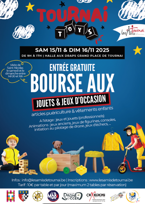 Rendez-vous donc du 14 au 16 novembre à Tournai pour cet événement ludique… et philanthropique. « A la fin du salon, les particuliers peuvent laisser leurs jouets invendus. Ils seront redistribués à la Banque alimentaire qui fera des heureux dans le Tournaisis, parmi les enfants nécessiteux », conclut Vincent Delrue. L’entrée sera gratuite.