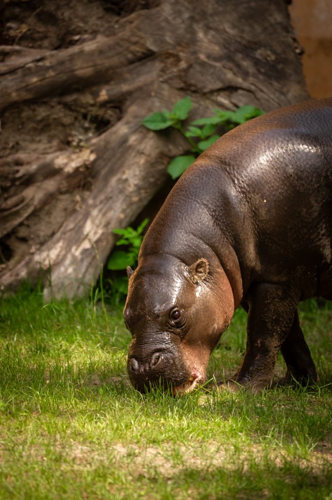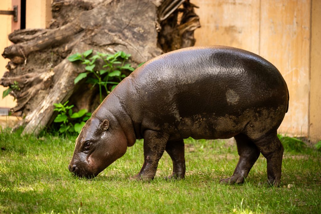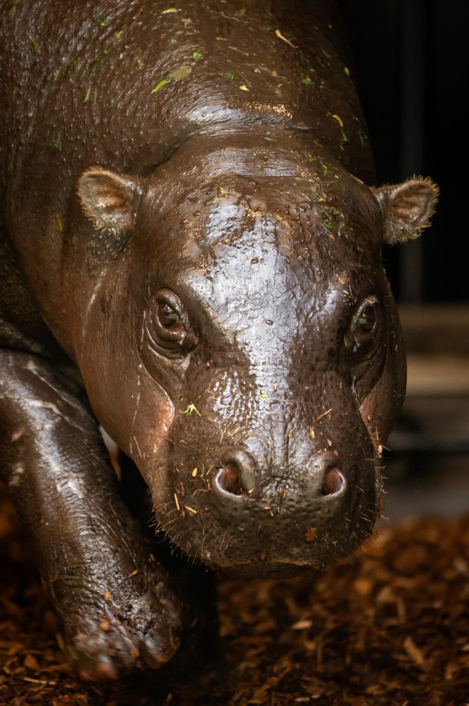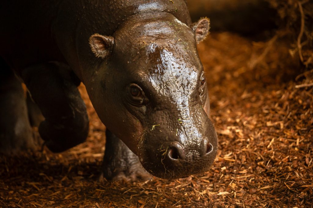 Plus petits que les hippopotames communs, les pygmées pèsent entre 180 et 275 kg. Nimba, espiègle et gourmande, apprécie particulièrement le persil. Le bâtiment abrite également de nouvelles espèces telles que les roussettes paillées africaines et des touracos.