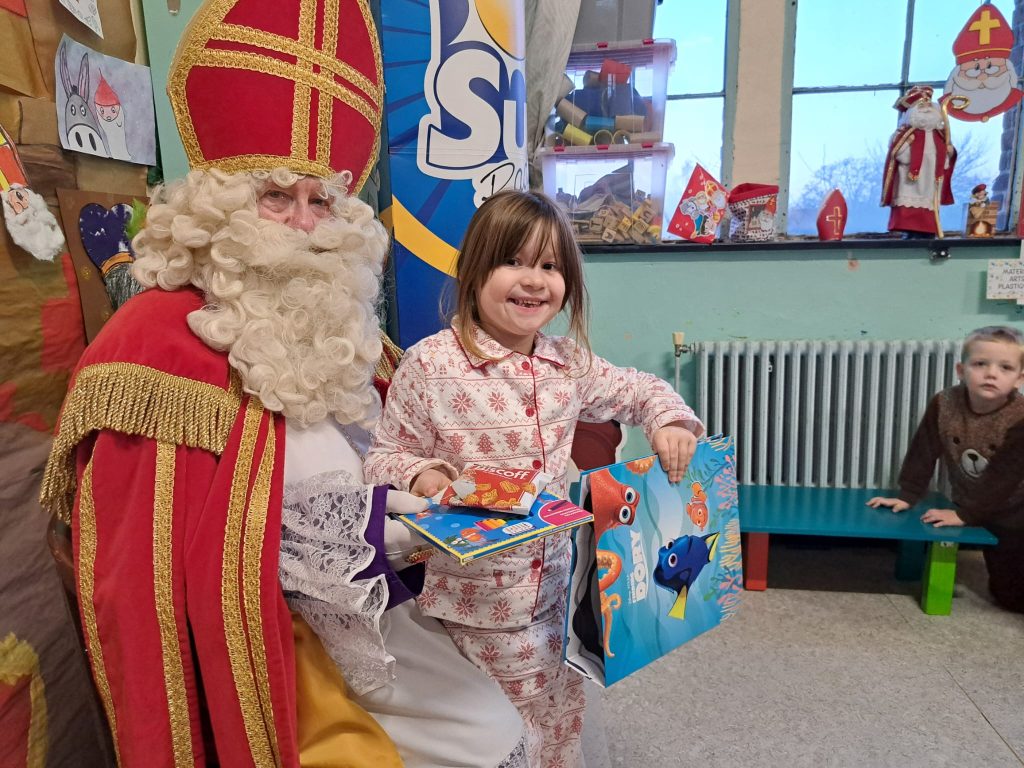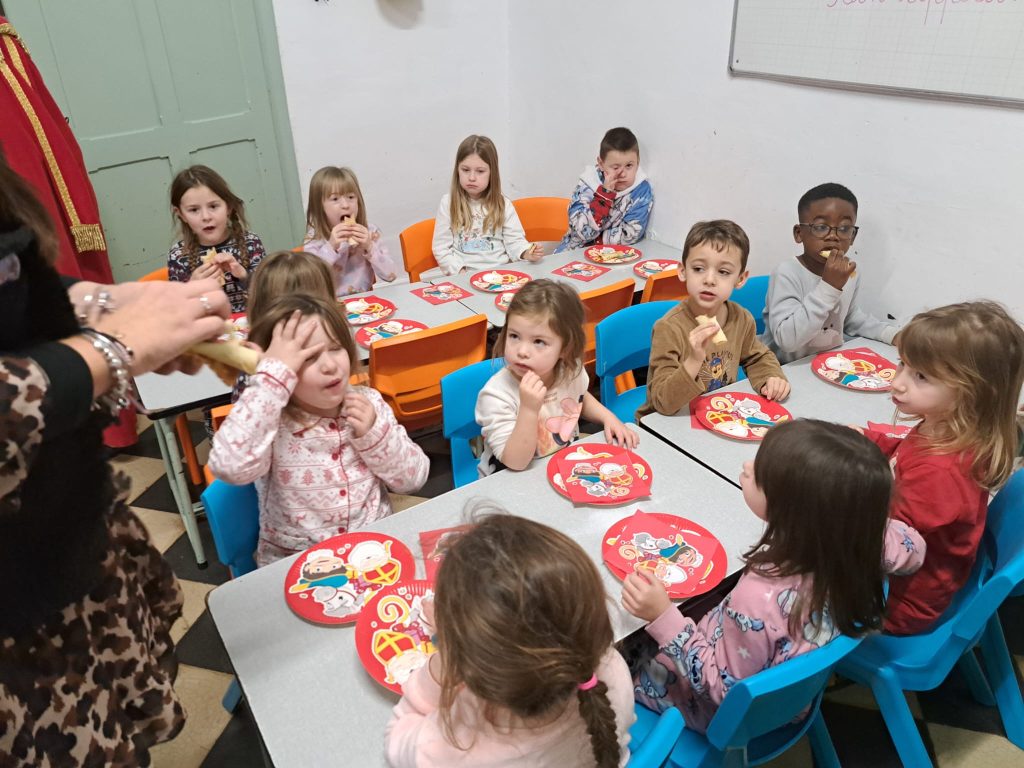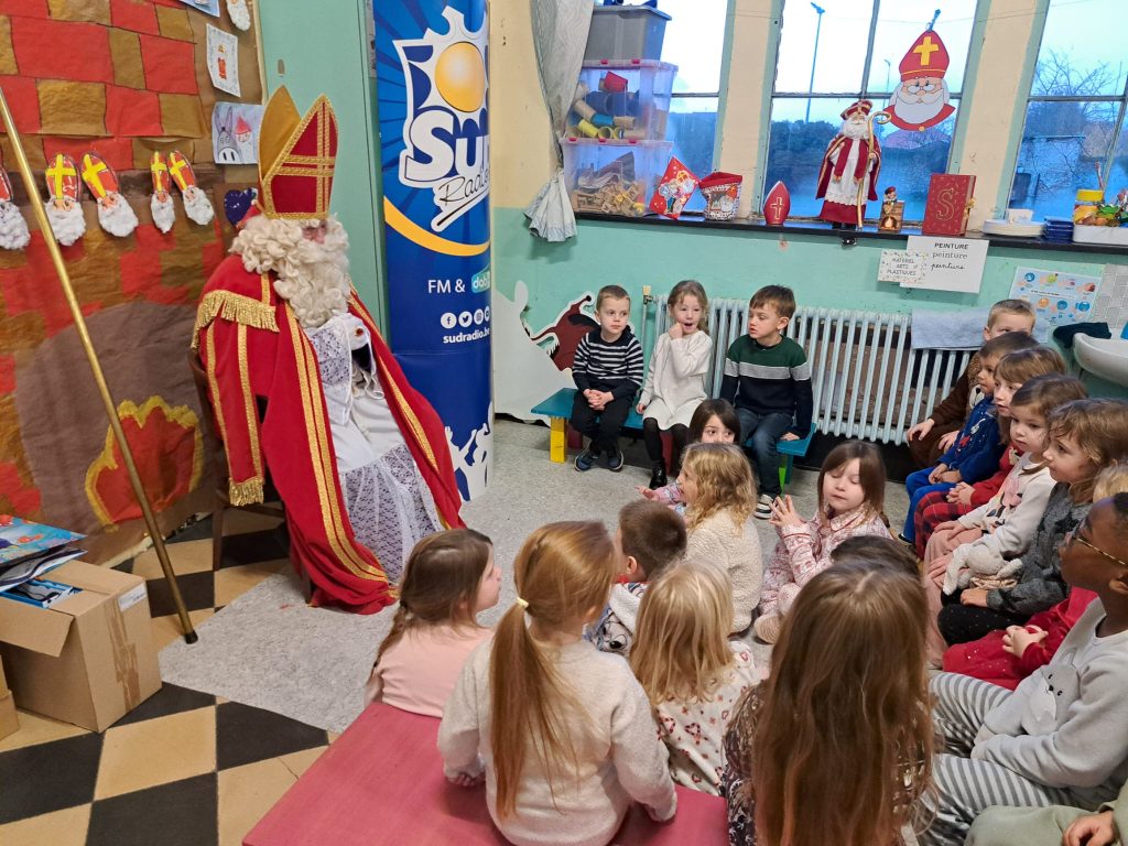 Après une nuit passée ensemble à dormir dans la salle de gymnastique et surtout attendre l’arrivée du Grand Saint, c’est vers 7h30 ce matin que les écoliers ont été réveillés par « Saint Nicolas ». Crêpes à gogo et cadeaux pour les enfants, dessins et câlins pour Saint Nicolas.