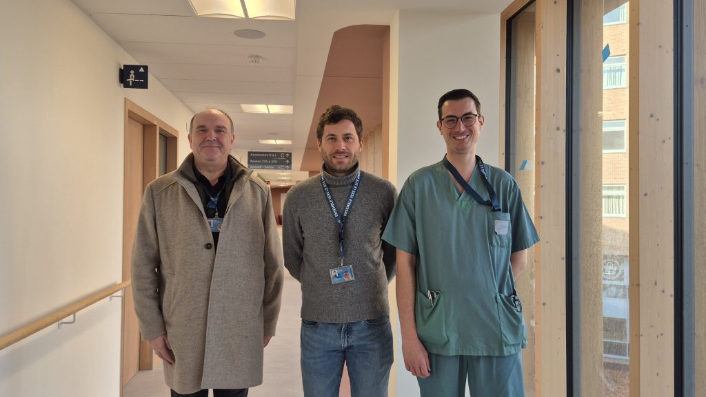 L’équipe du service endoscopie présente les infrastructures. De gauche à droite : Yves Gyselinck (directeur adjoint des infrastructures), Maxence Lefebvre (Gastro-entérologue) et Dylan Lievens (Infirmier en chef du service)