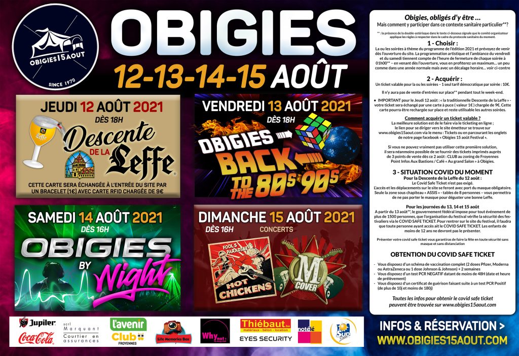 Comme Sud Radio, Obigies, obligés d’y être. Le programme débutera avec l’incontournable descente de la Leffe. L’occasion de déguster une Leffe Blonde ou Ruby dans un cadre convivial et enfin retrouver l’esprit des chapiteaux.